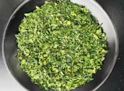 The leaves are carefully sorted to remove stems and veins, leaving only the soft, nutrient-rich leaf material. This de-stemming process ensures a smoother texture, deeper color, and cleaner flavor, creating the pure leaf flakes.